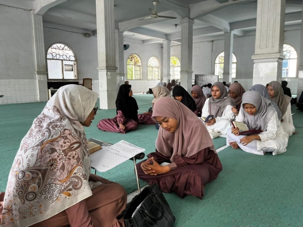 Santriwati Tahfidz Qur’an sedang melaksanakan ujian hafalan